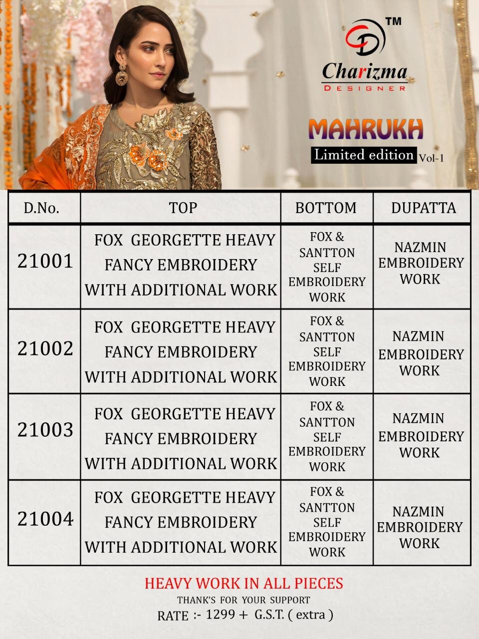 Charizma mahrukh limited edition georgette pakistani salwar kameez