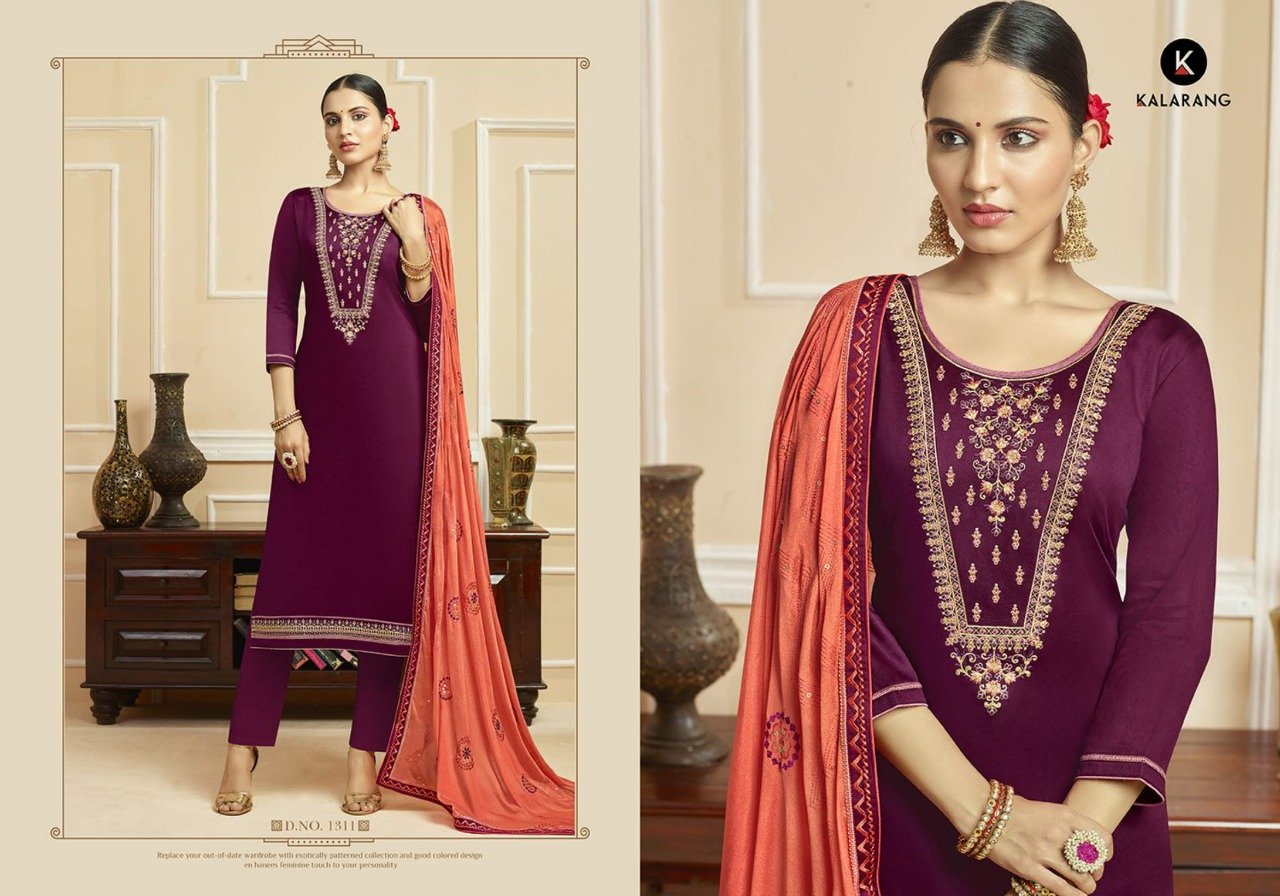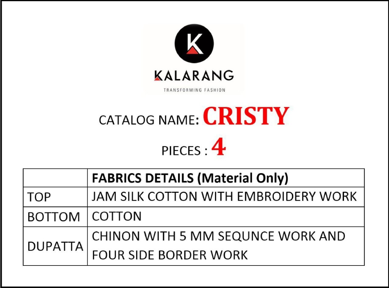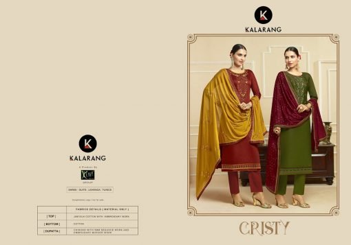 kalarang cristy jam silk cotton designer dress material with embroidery work