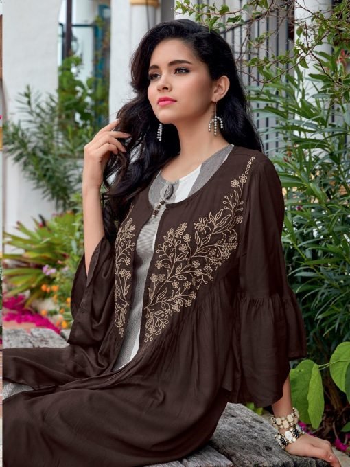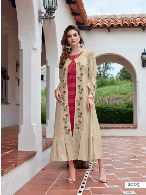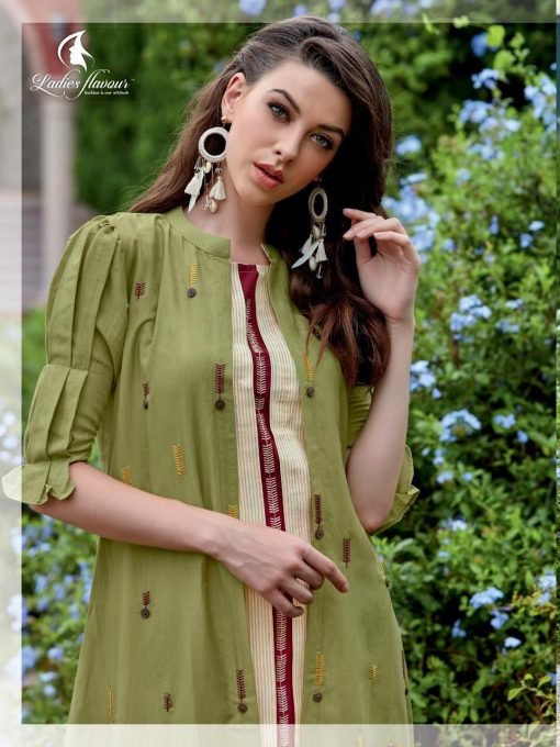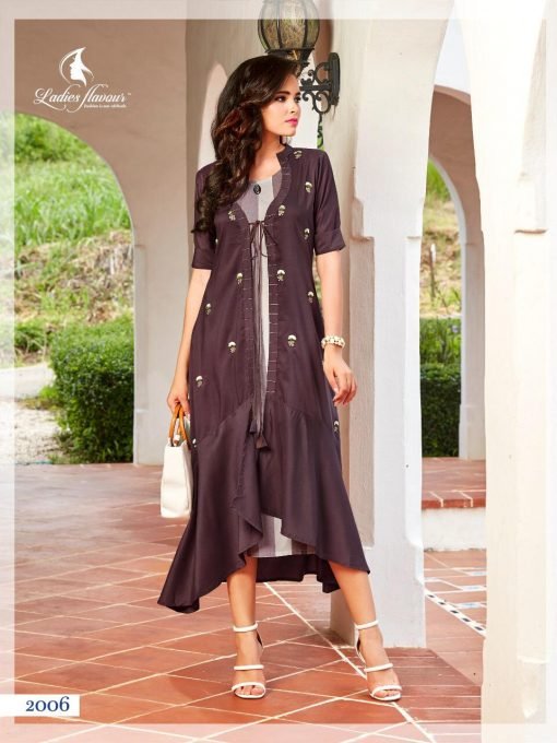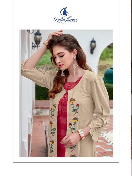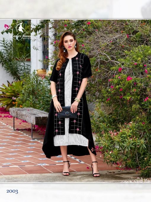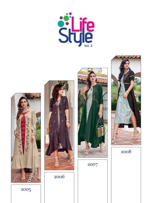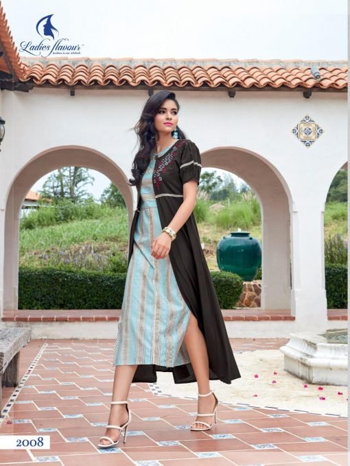 Ladies Flavour Life style 3 south cotton strips rayon embroidery work kurti