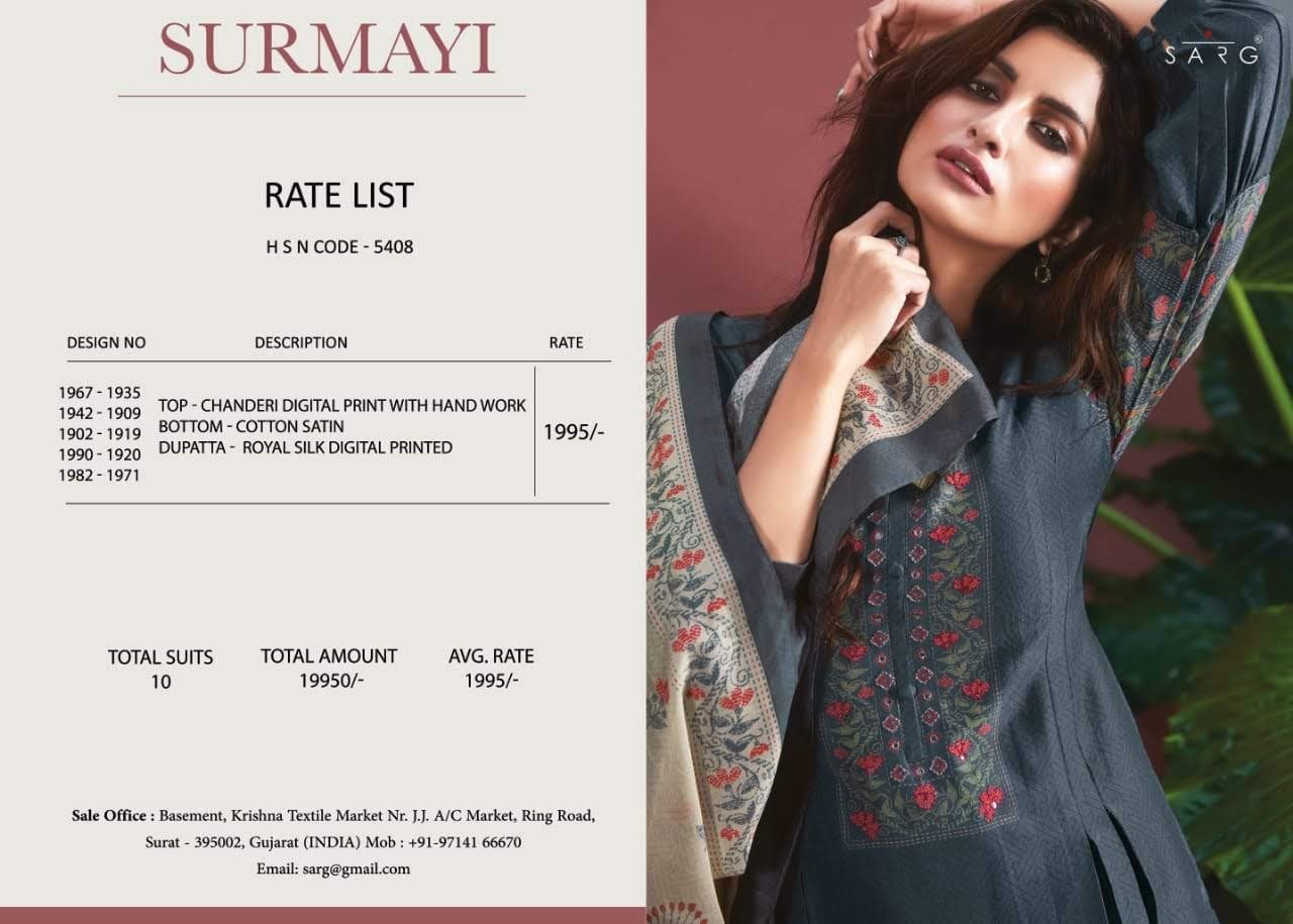 Be the first to review “Sahiba Surmayi Chanderi digital print salwar suit wholesaler” Cancel reply
