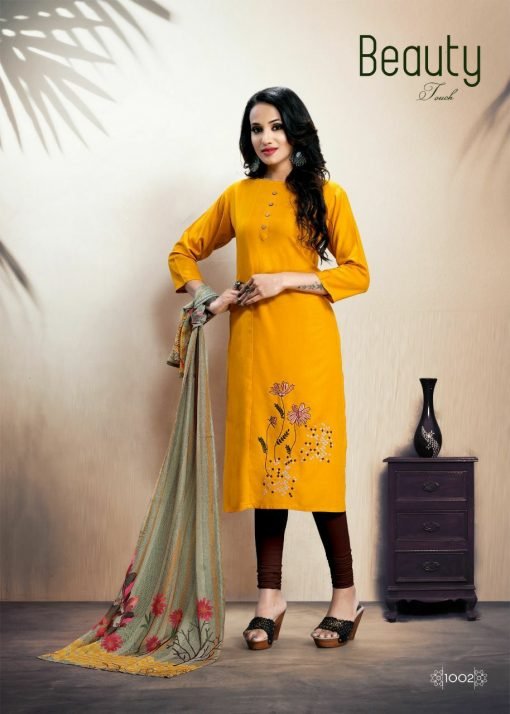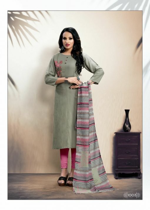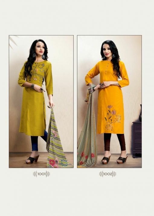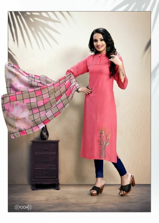| FABRIC | Reyon straight embroidery work kurti with digital dupatta