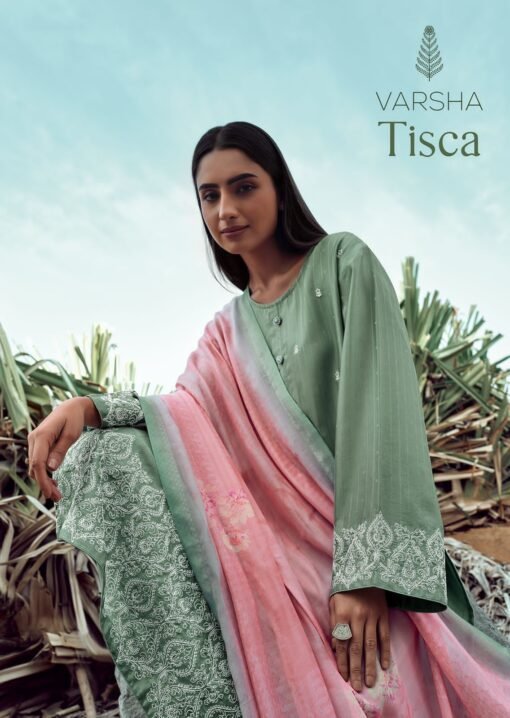 Be the first to review “Varsha Tisca Muslin Self Embroidery Dress Material Collection Wholesaler” Cancel reply