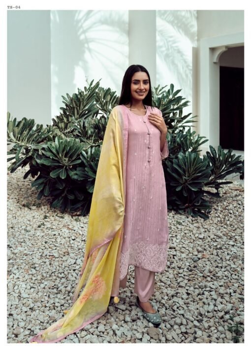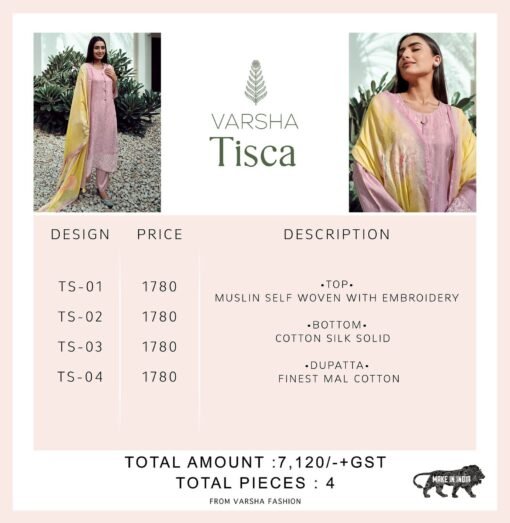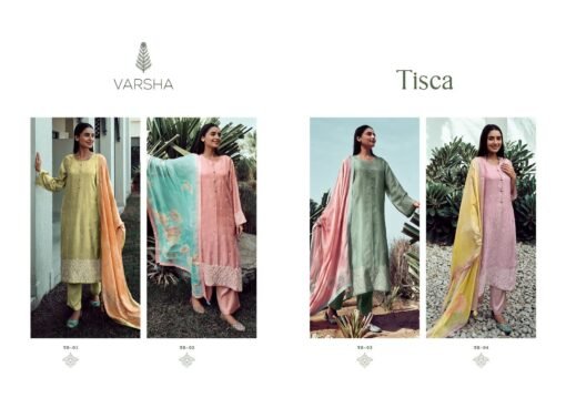 Varsha Tisca Muslin Self Embroidery Dress Material Collection Wholesaler